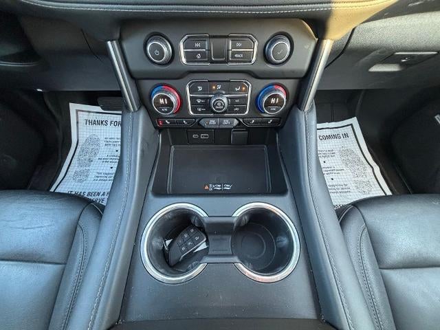 Local Trade. Local Trade!, Clean Autocheck!, 10-Way Power Driver & Passenger Seat Adjusters, 1st & 2nd Row Color-Keyed Carpeted Floor Mats, 1st, 2nd & 3rd Row All-Weather Floor Liners (LPO), 2-Speed Active Electronic AutoTrac Transfer Case, 2nd Row Pwr Release 60/40 Split-Folding Bench Seat, 3rd Row 60/40 Power-Folding Split-Bench, 3rd row seats: split-bench, 4-Wheel Disc Brakes, Apple CarPlay/Android Auto, Auto High-beam Headlights, Auto-Dimming Inside Rear-View Mirror, Black Tubular Assist Steps, Bose 9-Speaker Stereo Audio System Feature, Bright Front & Rear Door Sill Plates, Bumpers: body-color, Color-Keyed Carpeting Floor Covering, Delay-off headlights, Driver & Front Outboard Passenger Airbags, Driver Alert Package, Dual front impact airbags, Dual front side impact airbags, Dual-Pane Power Panoramic Sunroof, Emergency communication system: OnStar and Chevrolet connected services capable, Enhanced Driver Information Center, Floor Console w/Storage Area, Four wheel independent suspension, Front anti-roll bar, Front dual zone A/C, Front High-Approach Angle Fascia, Fully automatic headlights, Hands-Free Rear Power Programmable Liftgate, HD Surround Vision, Heated 2nd Row Outboard Seats, Heated Driver & Front Passenger Seats, Heated front seats, Heated Steering Wheel, Heavy-Duty Air Filter, Hill Descent Control, Infotainment Display, Lane Change Alert w/Side Blind Zone Alert, LED Daytime Running Lamps, License Plate Front Mounting Package, Low tire pressure warning, Luxury Package, Memory Settings, Memory Settings For Driver, Navigation System, Occupant sensing airbag, Outside Heated Power-Adjustable Mirrors, Overhead airbag, Power door mirrors, Power Liftgate, Power Tilt & Telescopic Steering Column, Preferred Equipment Group 2Z7, Rear anti-roll bar, Rear Cross Traffic Alert, Rear Pedestrian Alert, Red Recovery Hooks, Remote Start, SiriusXM Radio w/360L, Telescoping steering wheel, Tilt steering wheel, Universal Home Remote, Wireless Charging, Wrapped Steering Wheel.